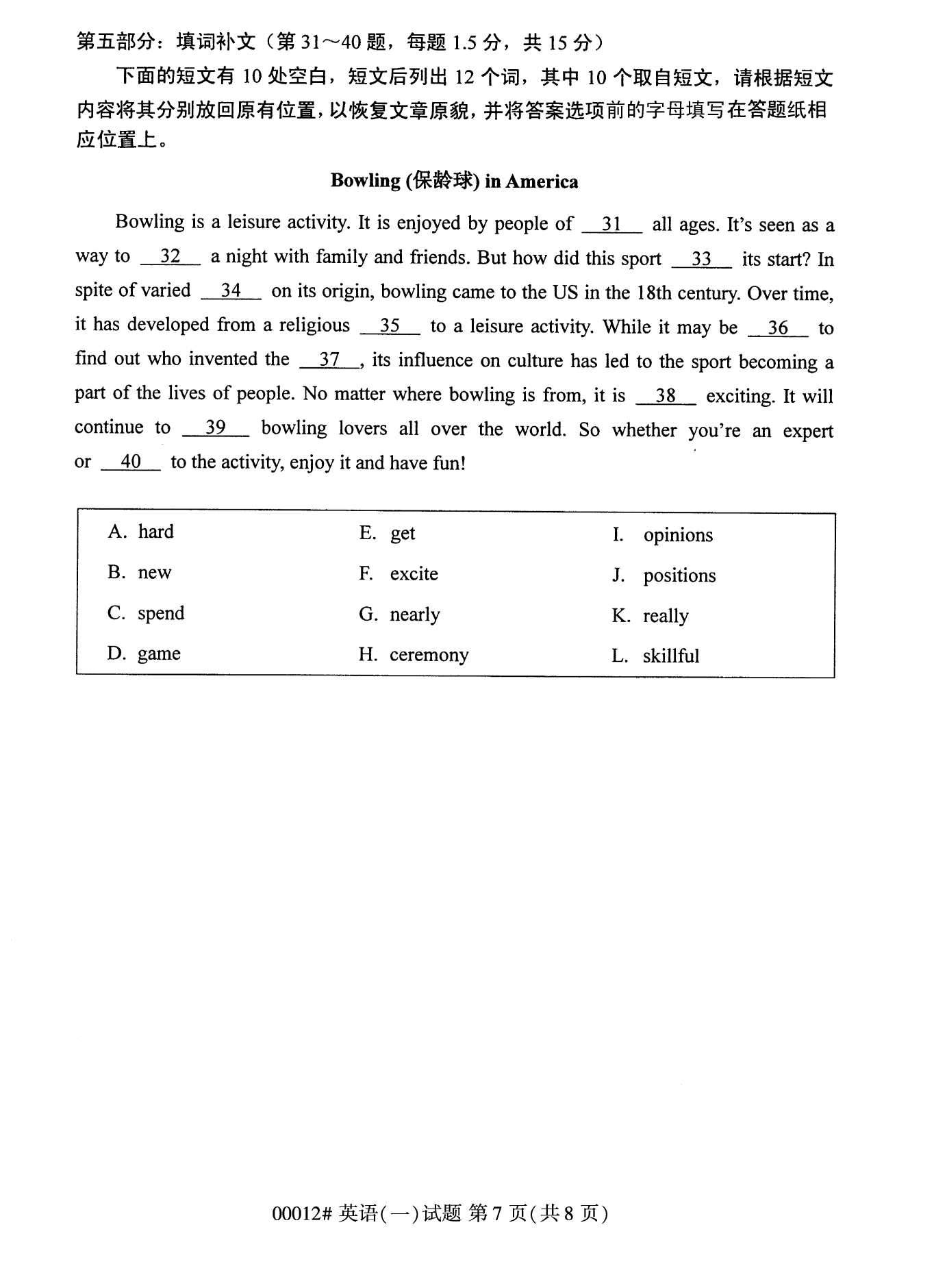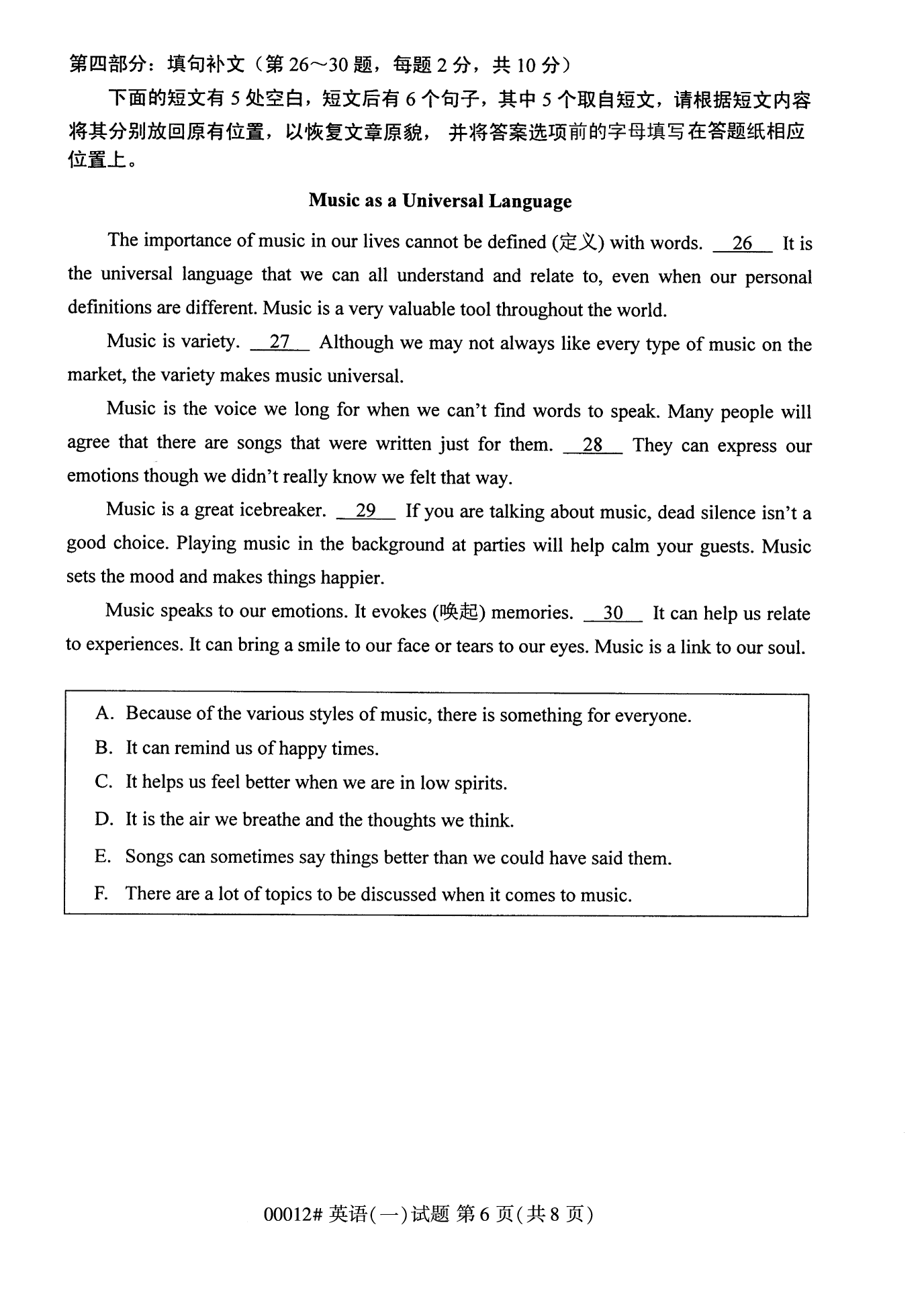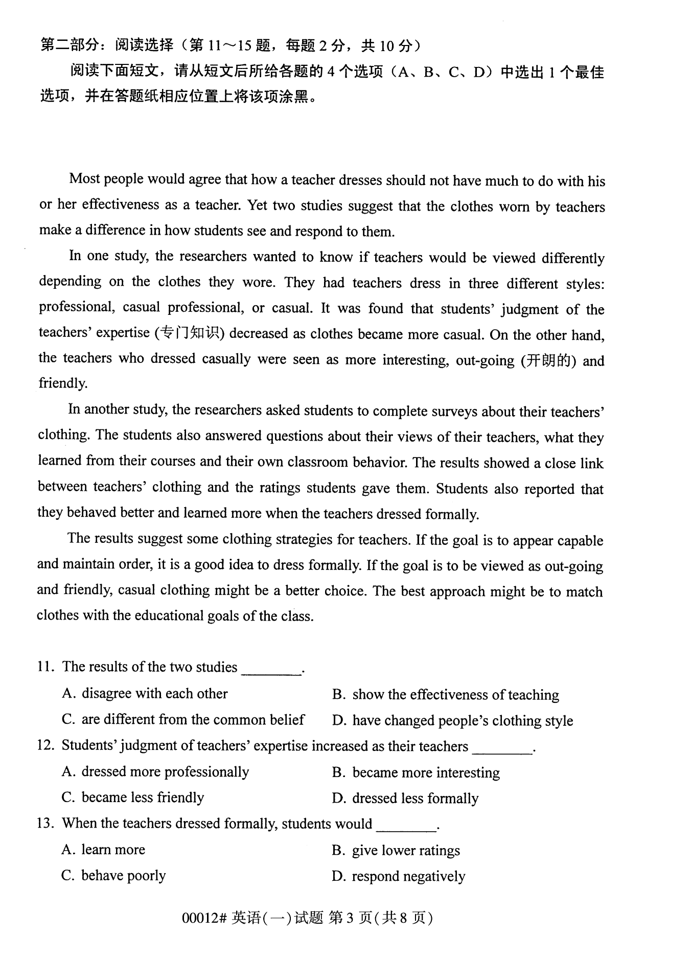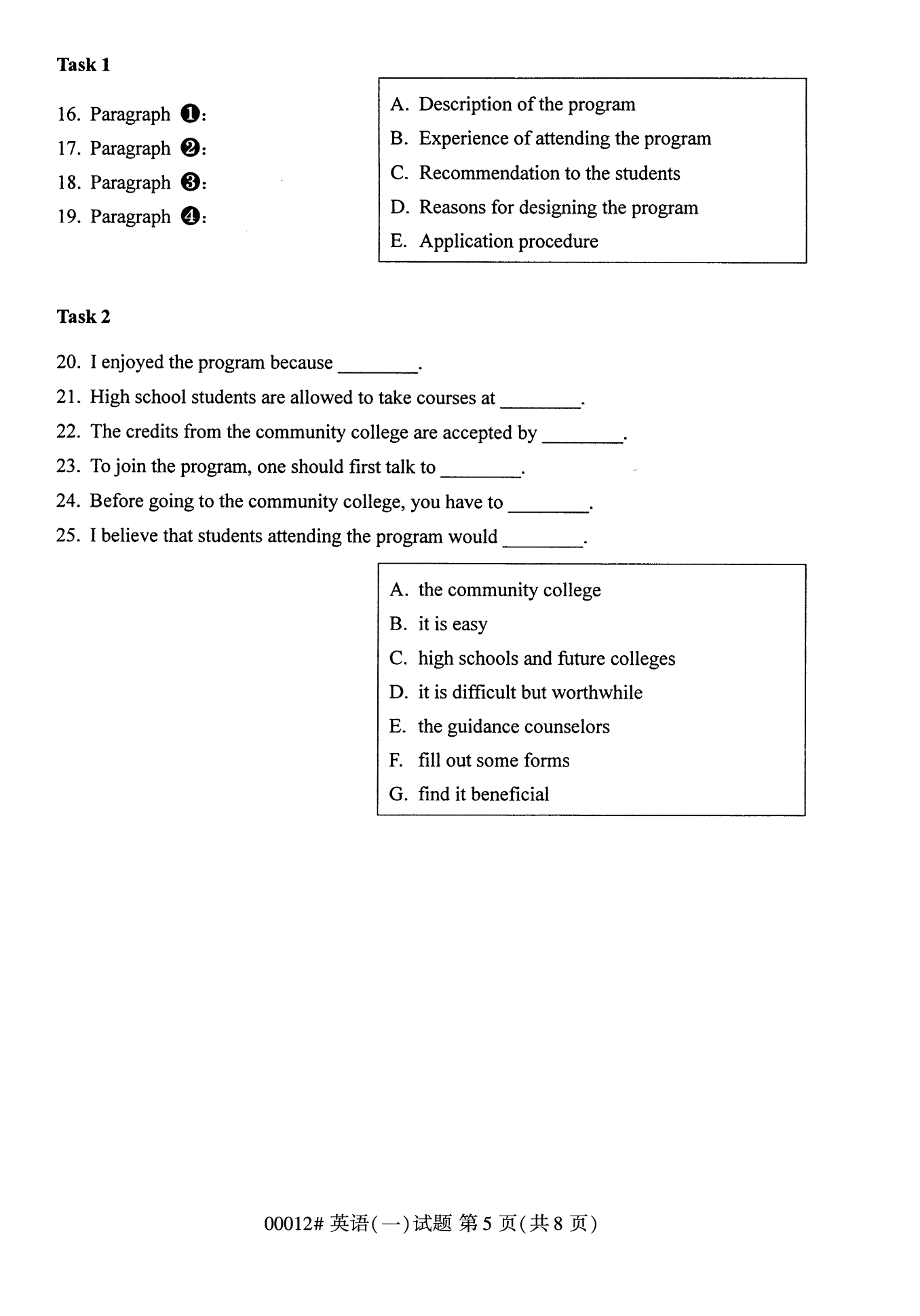 所在位置:重慶自學(xué)考試網(wǎng) > 試題題庫 > 自考試卷 > 2022年10月重慶自考00012英語(一)試卷